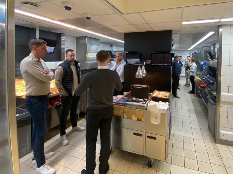 Na de presentatie vertrokken we in kleine groepjes door het restaurant en de keuken. Het was zowel leuk als interessant om te zien hoe de data een basis is voor de bedrijfsvoering. Van personele bezetting tot inkoop en service, als je informatie hebt dan kan het restaurant de pieken in de dag aan. Tot slot heeft iedereen z'n eigen ontbijt samengesteld en werd er nog kort napraat